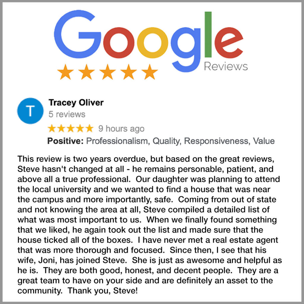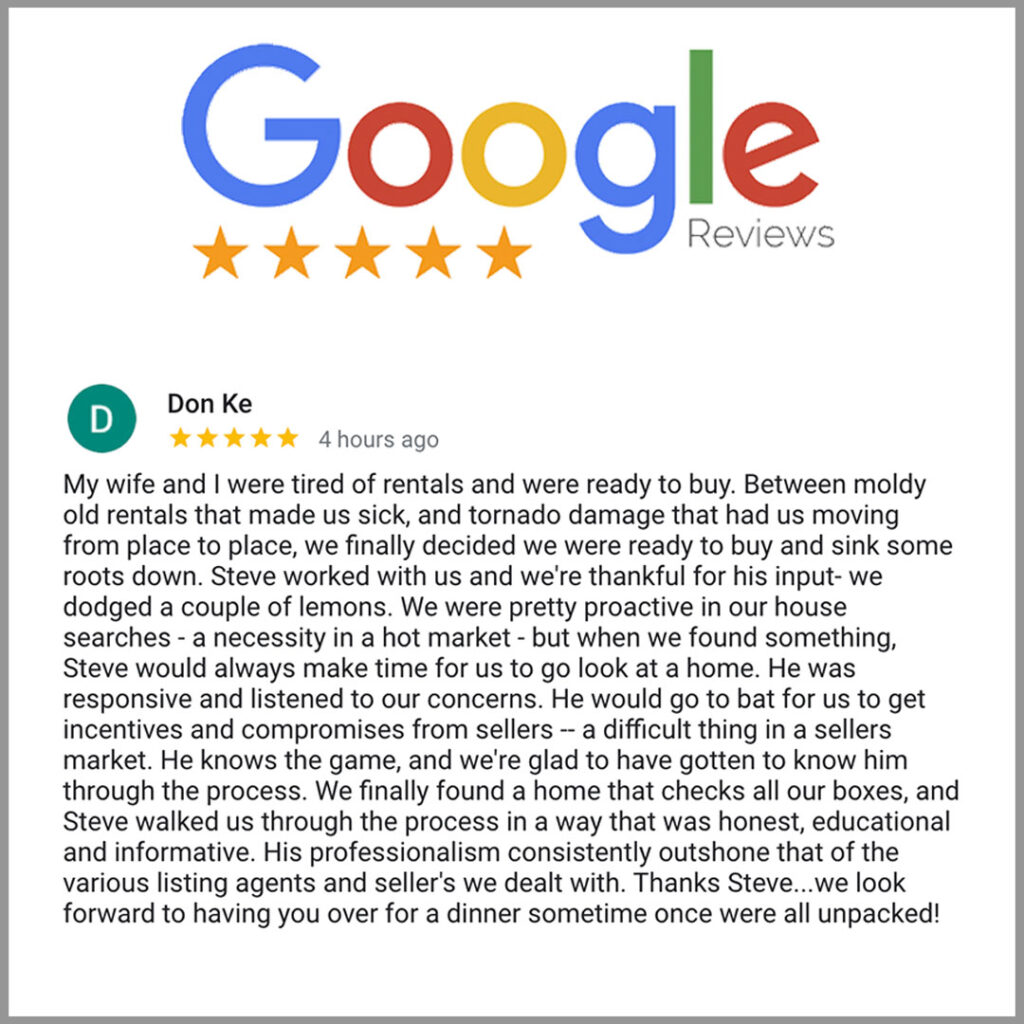 Steve has been the most wonderful agent to work with. Our experience was very enjoyable and I enjoyed getting to know him as we saw forty plus houses. You’re the best!